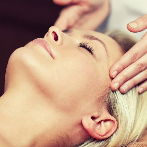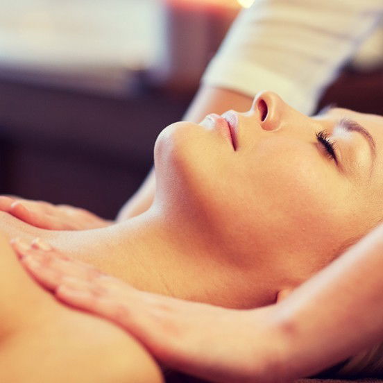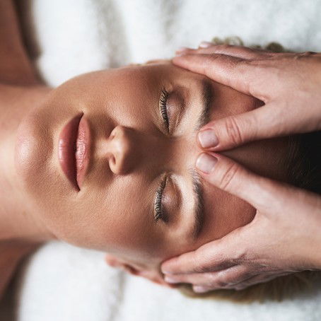 Drenaggio linfatico manuale: manovre leggere, lente e ritmiche su collo, retrocollo, mandibola, guance, zigomi e contorno occhi per aprire i collettori e favorire il deflusso dei liquidi.